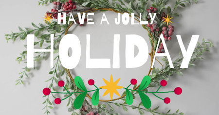 Image of have a jolly holiday text over christmas decoration on white background. Christmas, festivity, celebration and tradition concept digitally generated image.