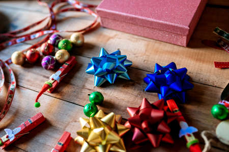 Christmas holiday decorations prepared for gift packing