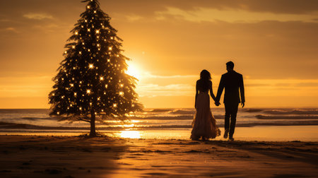 couple christmas tree on the beach