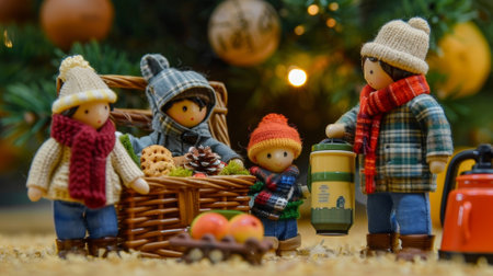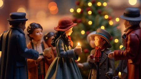 miniature carolers gathered around a Christmas tree, radiating the warmth and joy of the holiday season.High resolution AI generated