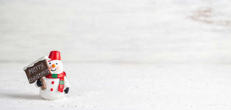 Merry Christmas and Happy new years Snowman web banner with copy space.