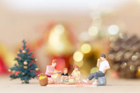 Miniature people, Happy family celebrating A Christmas