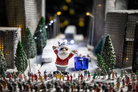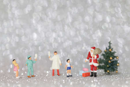 Miniature people, Santa claus and gifts for kid , Christmas and Happy New Year concept.
