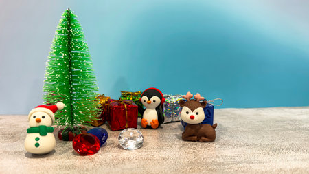 Christmas decoration with Santa Claus, bear, snowman and Christmas tree