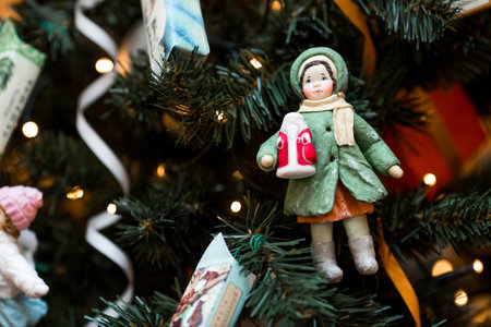 Christmas decorations. Soviet Christmas tree. Old retro cotton Christmas tree toy. 1930s.