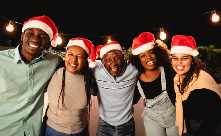Group of multiethnic family celebrating Christmas or New Year at home