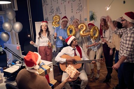 happy Business team celebrating new 2020 year in office
