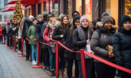 Shoppers rushing and fighting over discounted products on black Friday, crowd of people while shopping during seasonal sales. Diverse people customers rushing for bargains, hunting for discounts
