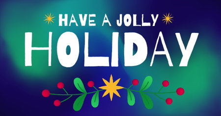 Image of have a jolly holiday and ivy over green and blue background. Christmas, winter and communication concept digitally generated image.