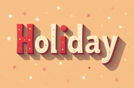 Cheerful letters spell out 'Holiday' in vibrant colors against a warm backdrop, creating a joyful celebration atmosphere. The design features playful elements, enhancing the festive spirit..