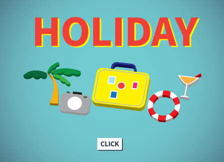 Holiday word is written on wood block with star, heart and magnet. The concept of a holiday tourism campaign, use image for design in business or promotion for travel.