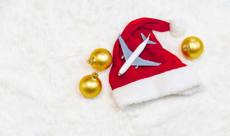 Travel for Christmas. Airplane with Christmas decor. Selective focus.Holiday