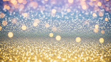 Lights showing a shimmering background of golden and silver glitter with soft bokeh lights creating a magical and festive atmosphere keywords: glitter, sparkle,...