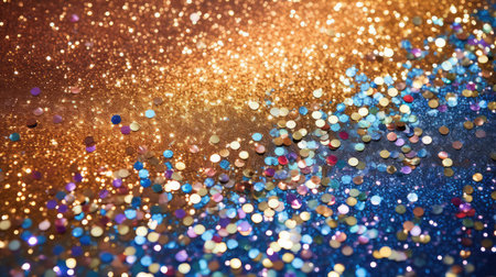 Abstract background with colorful glitter and bokeh lights, perfect for festive or celebratory designs.