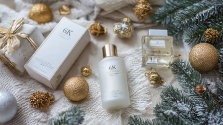 Perfect for luxury holiday skincare promotions.