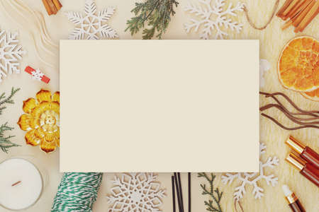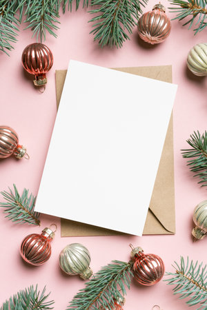 Beautiful Christmas Composition with Blank Card. Mockup for holiday designs.