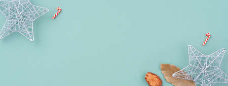 Baner background. Christmas and new year festive composition on blue background with copy space for your text