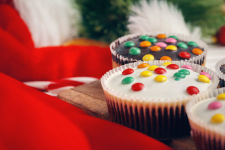 Christmas cakes on the table with tangerines