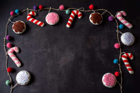 Christmas dark background with handmade christmas candy canes and copy space