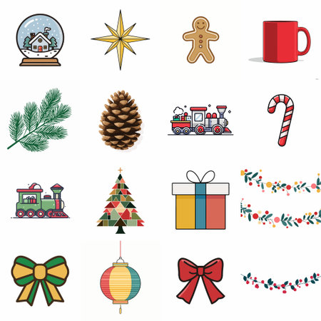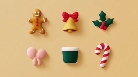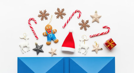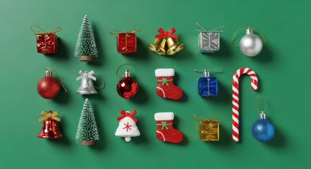Festive holiday decorations arranged in a flat lay, ready for seasonal promotions.