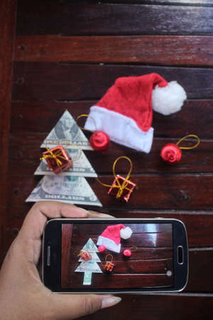 Taking photo of christmas money tree