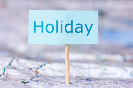 Black board with word holidays against spanish sea coast. Travel and holidays.