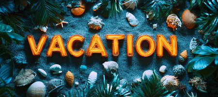 Vibrant VACATION Lettering Crafted from Lush Tropical Elements, Studio Shot on White