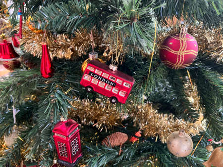 Hanging Christmas decorations and ornaments in the Christmas tree