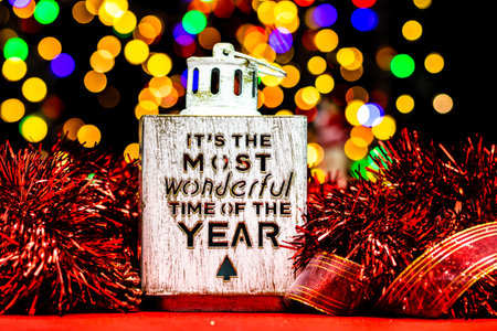 Christmas decoration, Christmas and New Year holidays background, winter season with Christmas ornaments and blurred lights