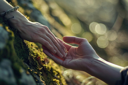 hand reaches for hand towards each other