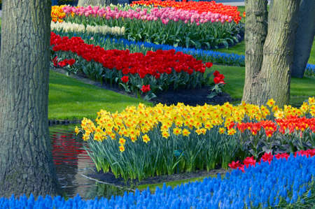 Spring flower bed in Keukenhof gardens, the Netherlands