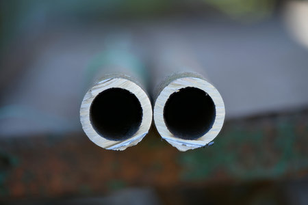 metal pipes on stack, close up