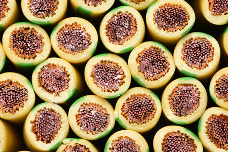 Group of yellow and green earth cable closeup