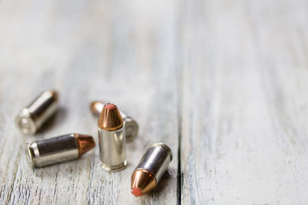 A set of bullets on a wood background.