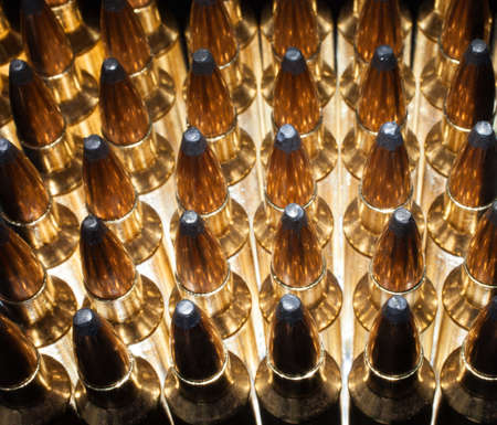 Rows of the shiny bullets with selective focus point