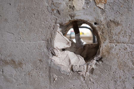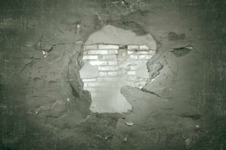 The hole in the wall in the form of a circle. Background