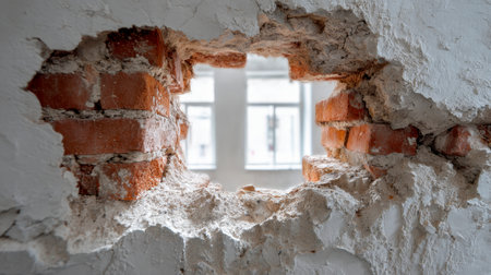 A torn hole in the wall. Generative AI