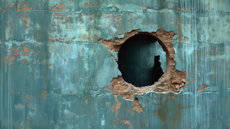 Unusual perspective with a wall featuring a mysterious hole, sparking curiosity and imagination, Ai Generated.
