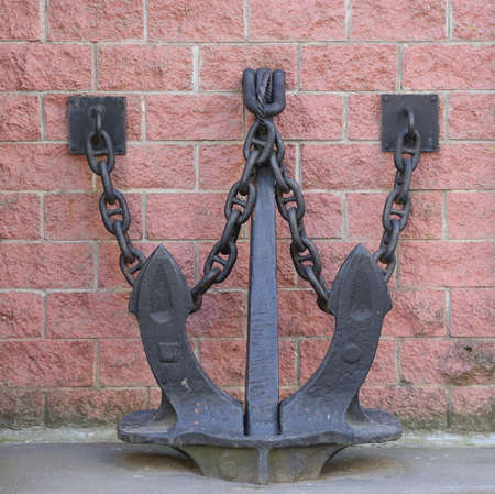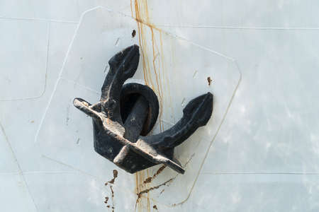 Rusted ship s anchor on a gray ship s anchor hole in the North Sea