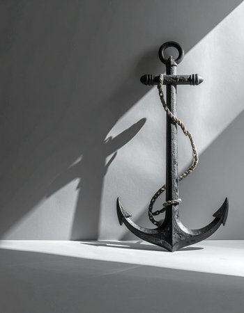 An anchor serving as decoration on a blank white backdrop