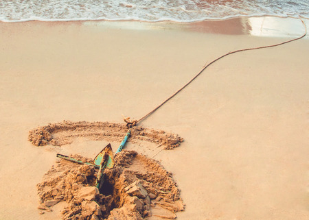 Small boat anchor on a shore of ocean