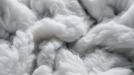 This close-up image showcases soft, fluffy white fibers with intricate textures and patterns, ideal for themes of comfort, warmth, and natural design in various projects.