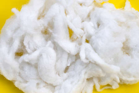 Polyester stable fiber on yellow background.