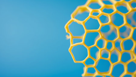 AI Generated. Abstract Yellow Honeycomb Texture on Bright Blue Background