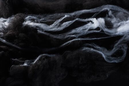 black and white cotton wool clouds, dark Halloween background