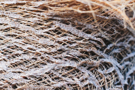 Close up Texture Crossed lines Fibres Coconut Palm tree. Energy of Nature kinesthetic sensations