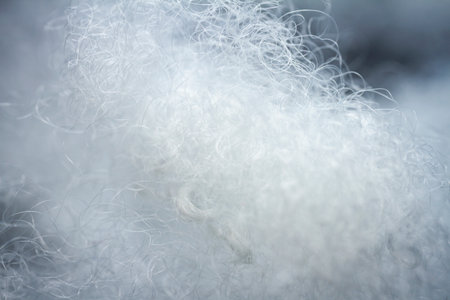 Extreme macro of polyester stable fiber. Selective focus, shallow depth of field.