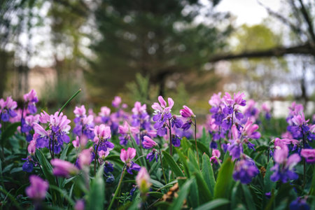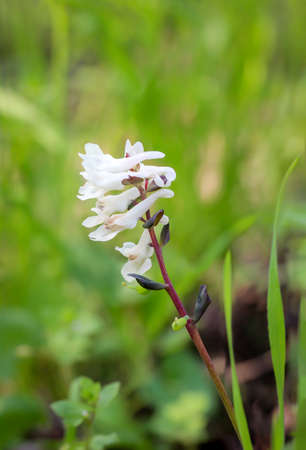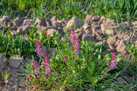 Corydalis solida on a garden. Traditional spring plant in the forest of northern Europe and Asia. Seasonal flowers background concept