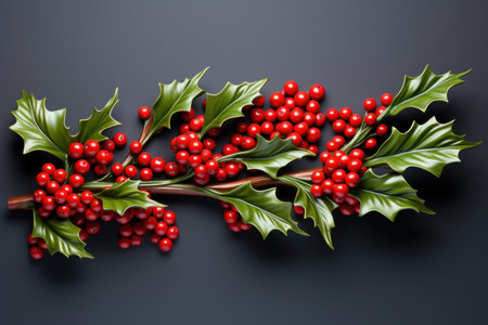 festive holly branch with bright red berries AI generated illustration