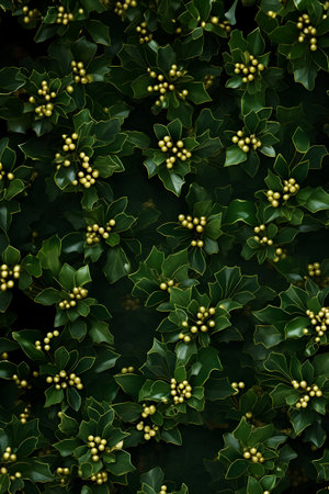 Lush holly leaves with glossy festive shine